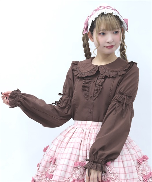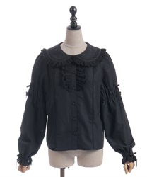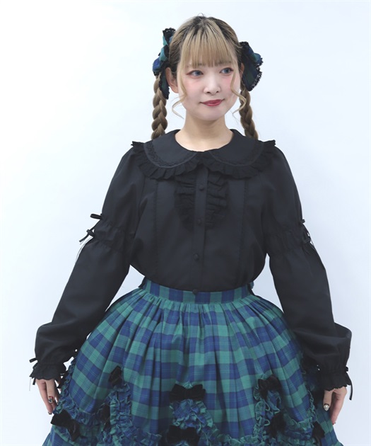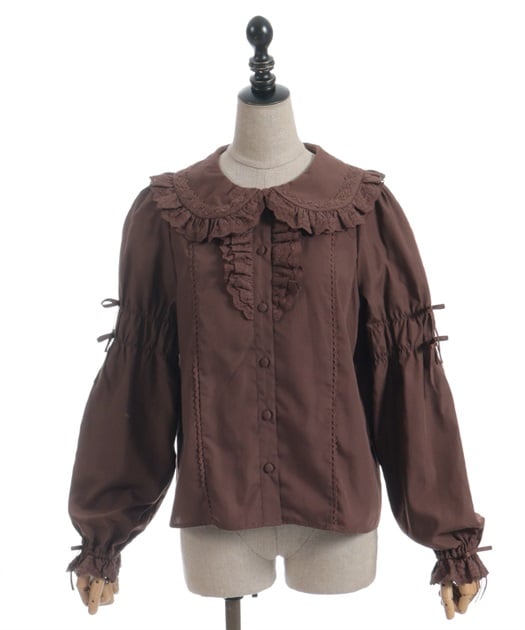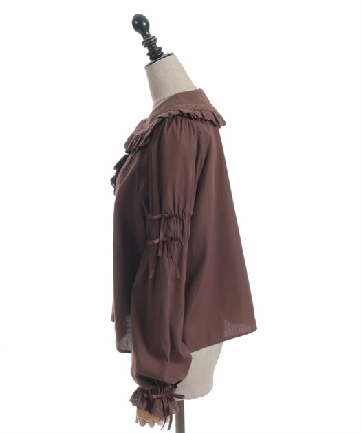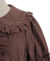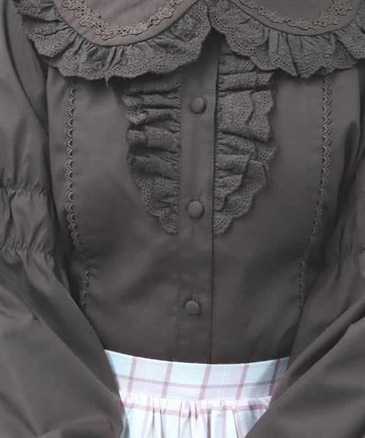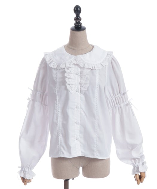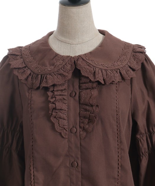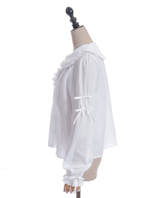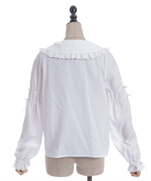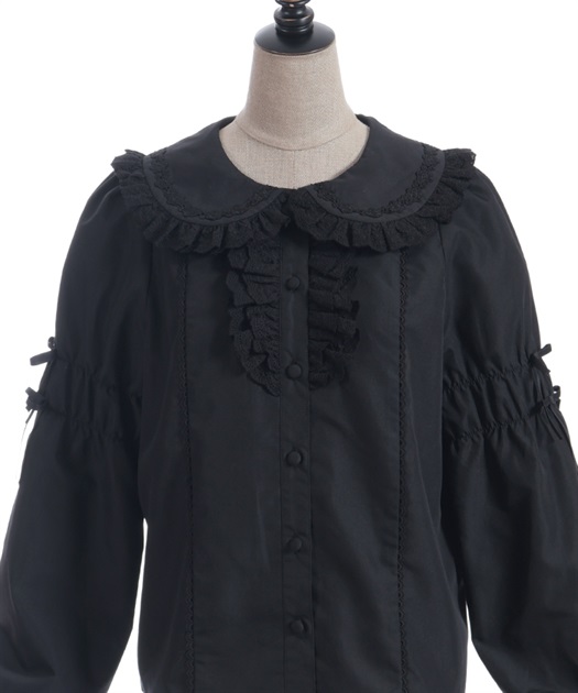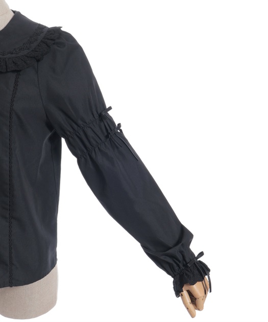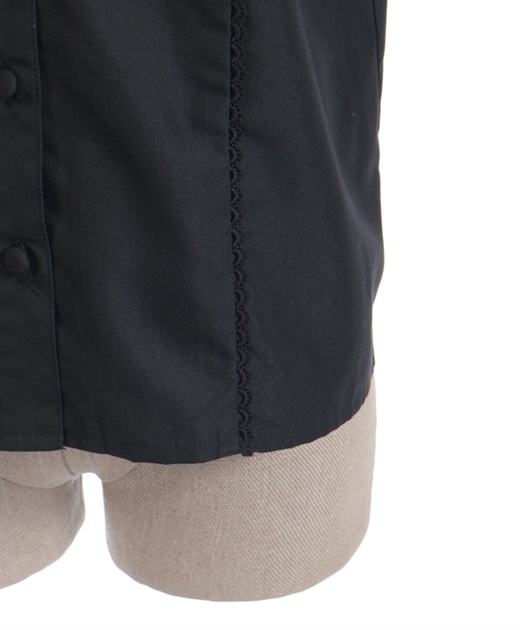 丸襟にコットンレースをあしらった合わせやすいブラウスです。