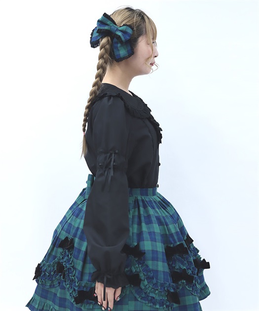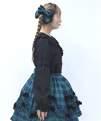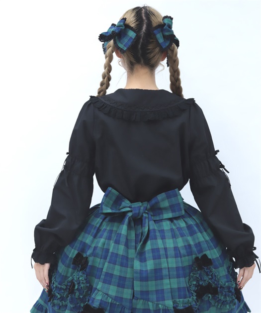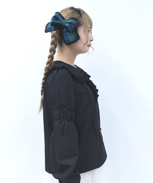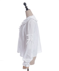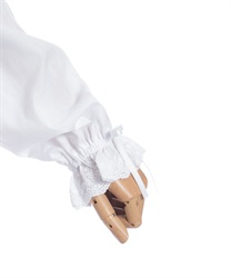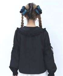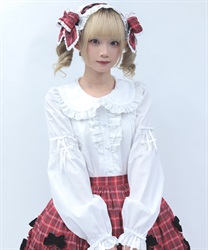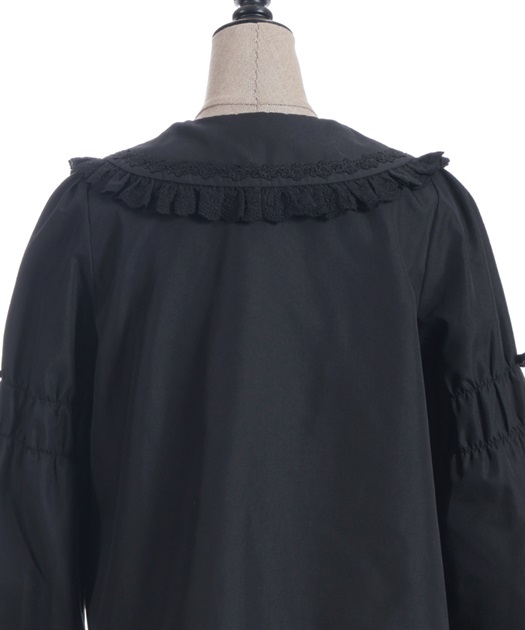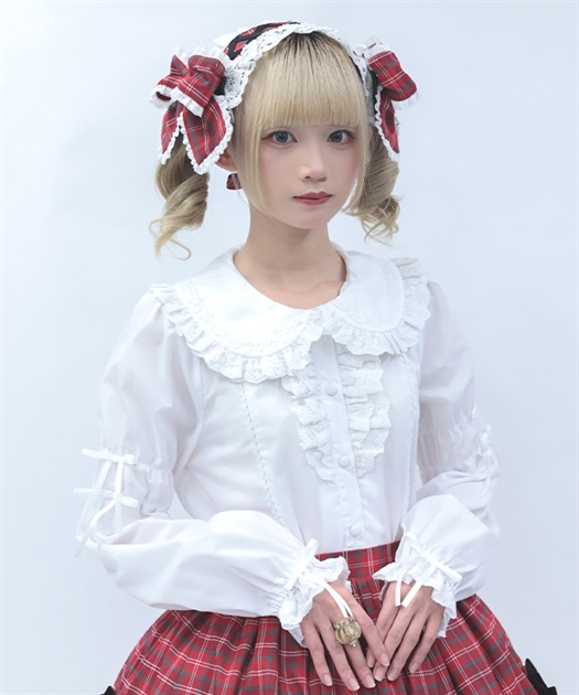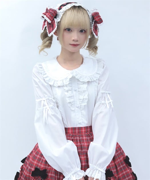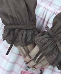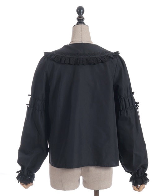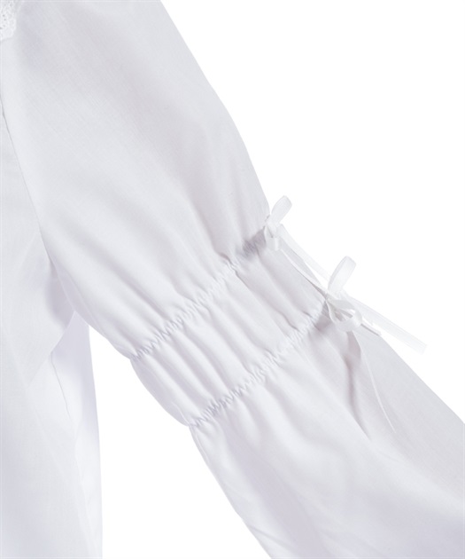 コットンレースやお花のケミカルレースをたくさんあしらったブラウスです。お袖にはゴムが入っており、ふんわりするデザインです。細めのリボンをあしらい、甘すぎないテイストです。