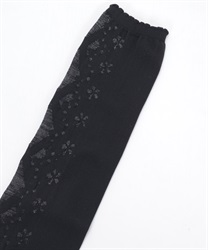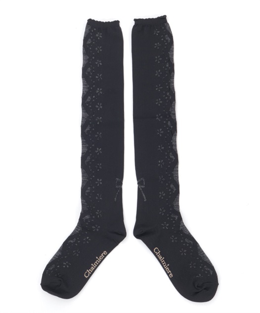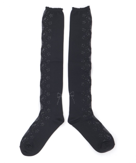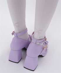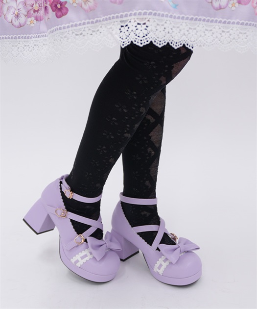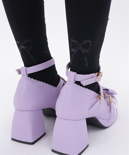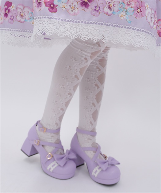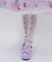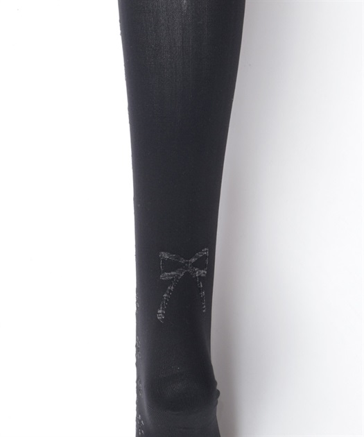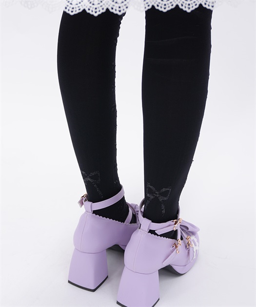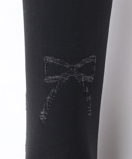 レースアップ風デザインで使い回しがしやすく、どんな柄物のお洋服とも相性◎後ろ足首あたりにはさりげないリボン柄もあしらっています。