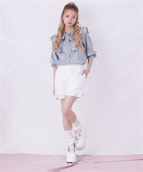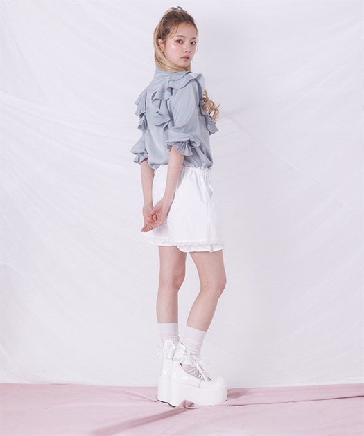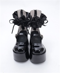 ボリュームのあるシュシュアンクルがインパクトあるパンプス。