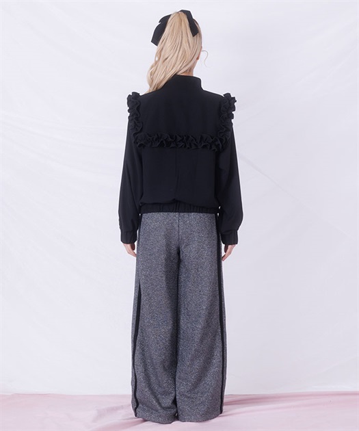 フリルを贅沢にあしらった存在感のあるジャケット。