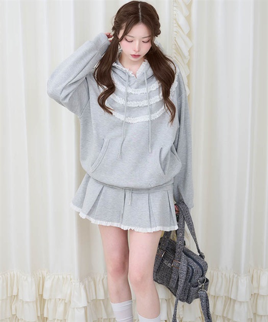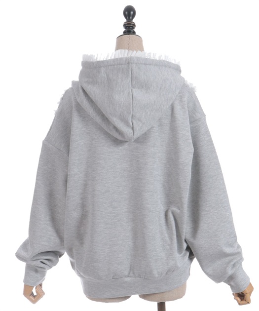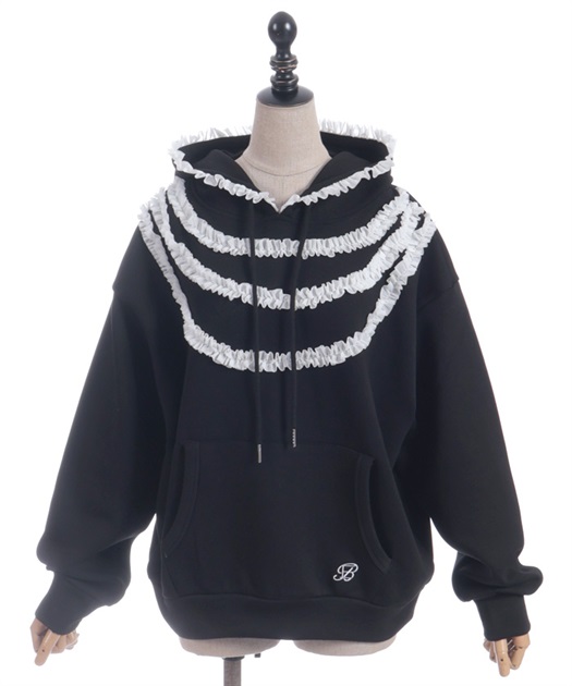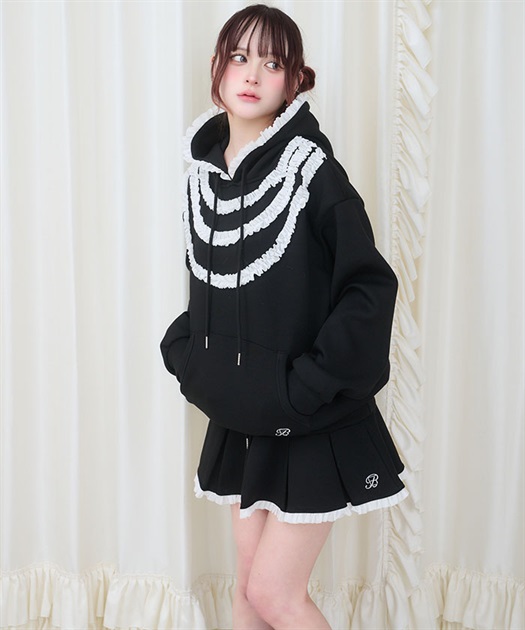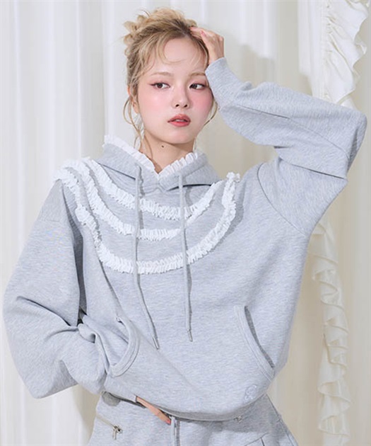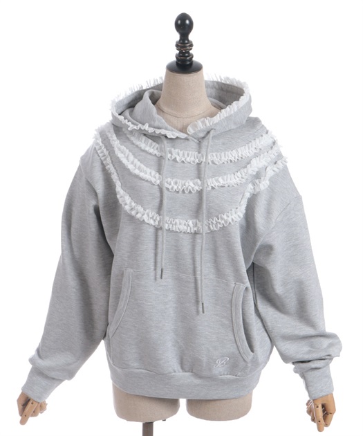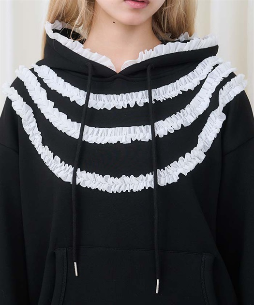 ロマンティックなフリルをたっぷりあしらった甘さとカジュアルさを両立させたパーカー