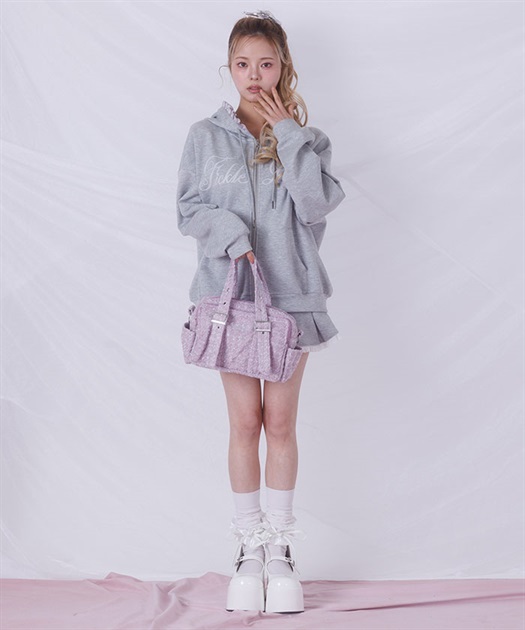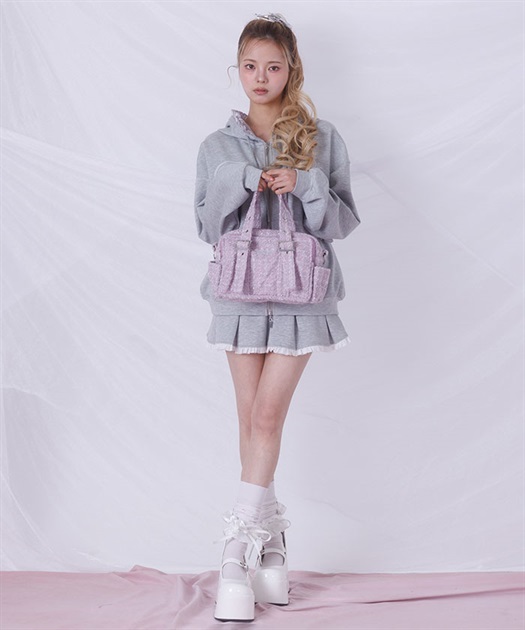 キラキラ光るツイード生地が可愛いバッグ。