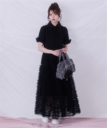 ラメ糸が組み込まれた表面感のある生地の上品な印象とシルバーバックルの存在感が持つだけで目線を集めるアイテムです。