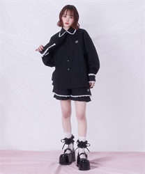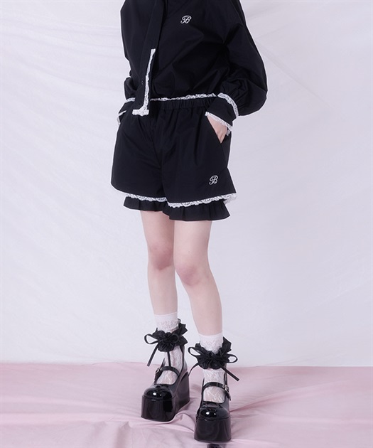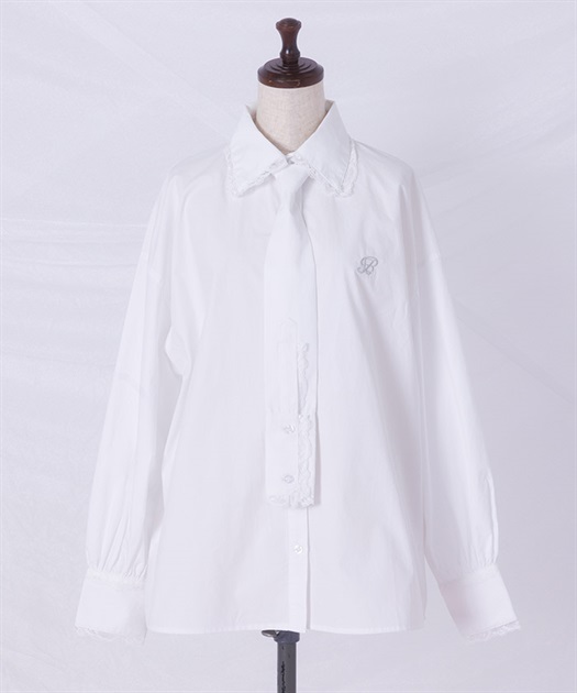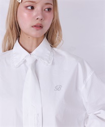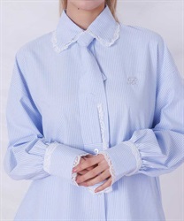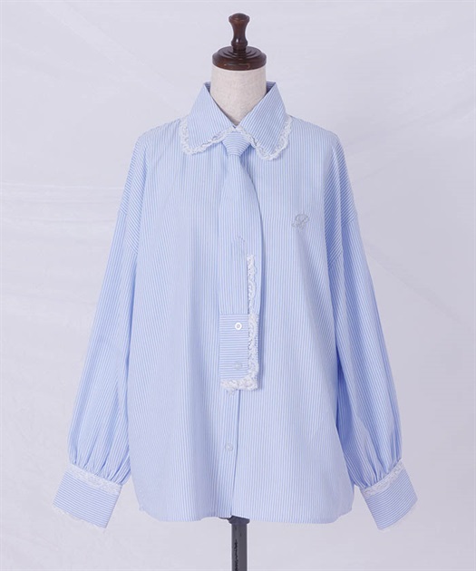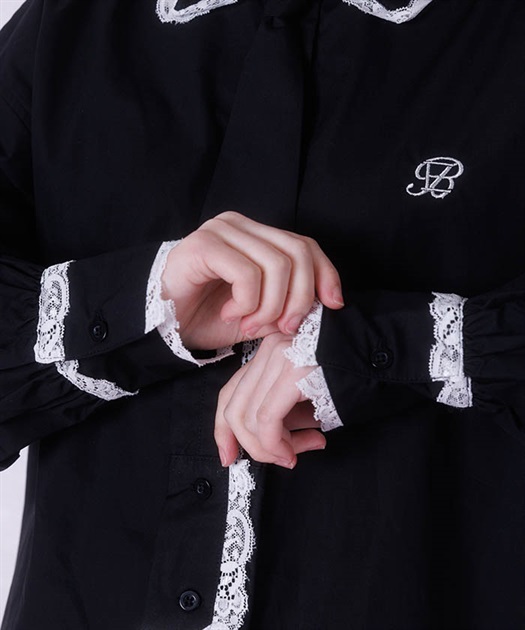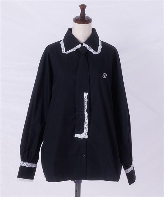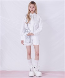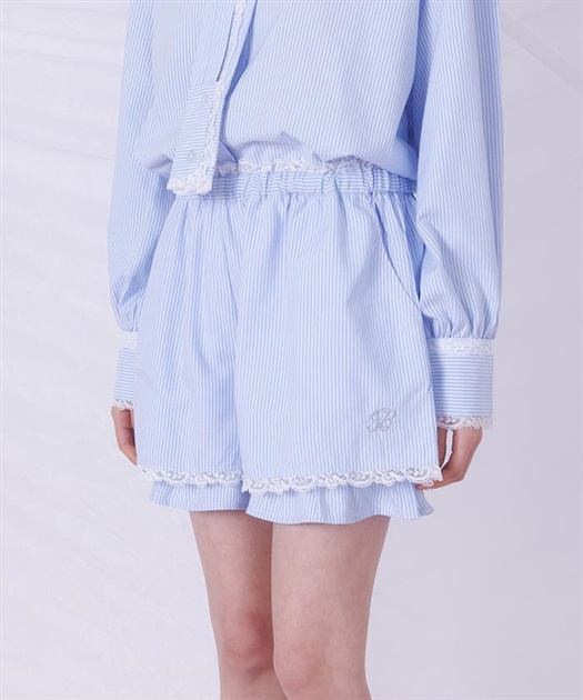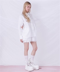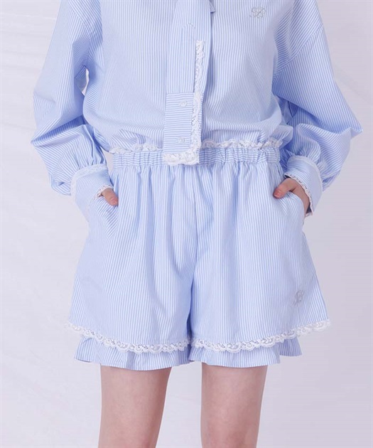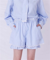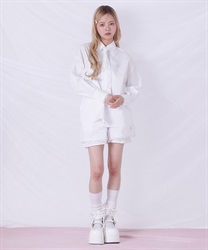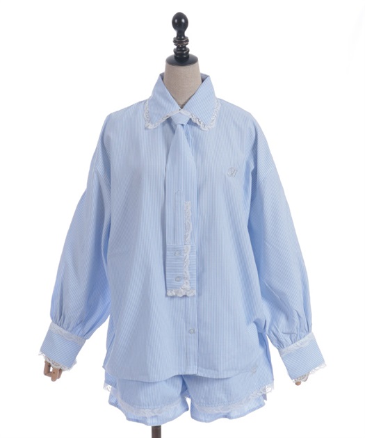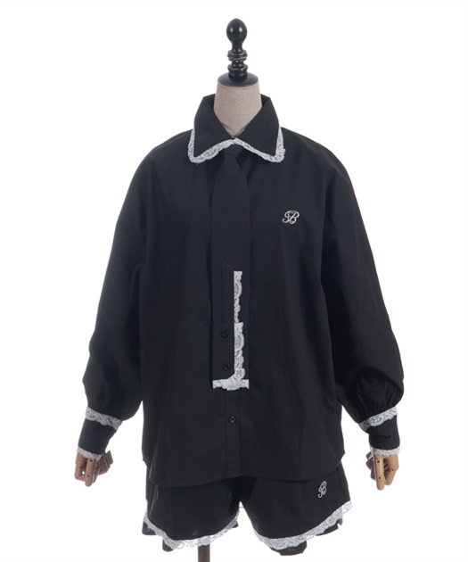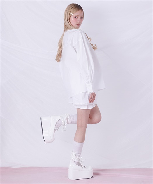 メンズライクなシャツデザインにレースフリルをあしらったセットアップ。