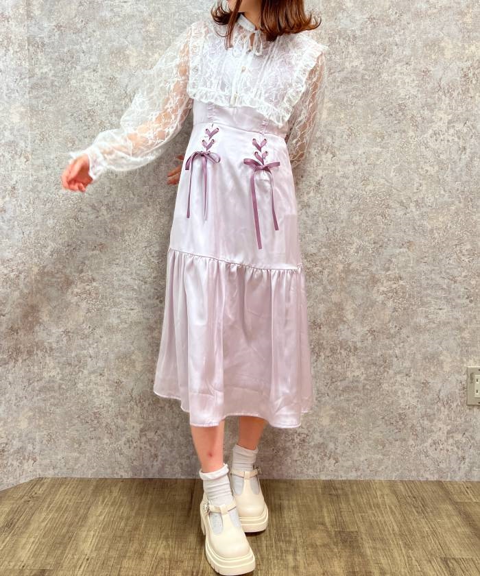 レースアップロングキャミワンピース【期間限定価格】