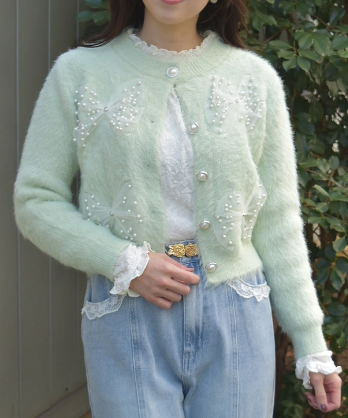 リボンニットカーディガン