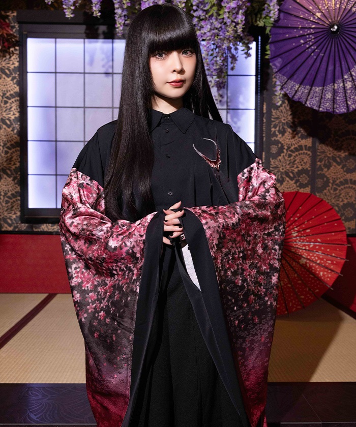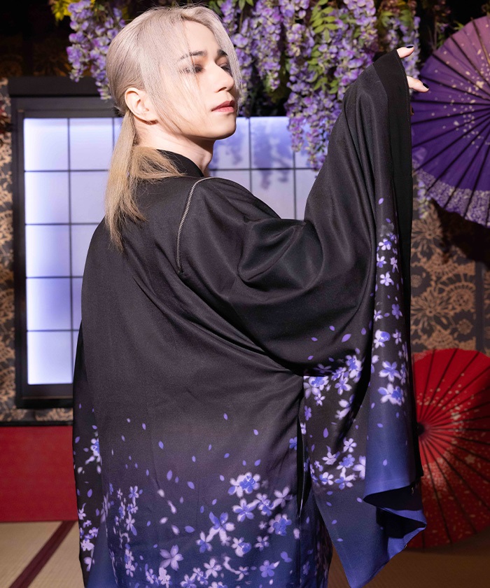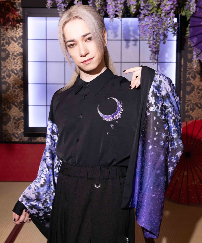 胸元の三日月と桜の刺繍だけでなく 袖のグラデーションと透明感のあるプリントが美しい✨️