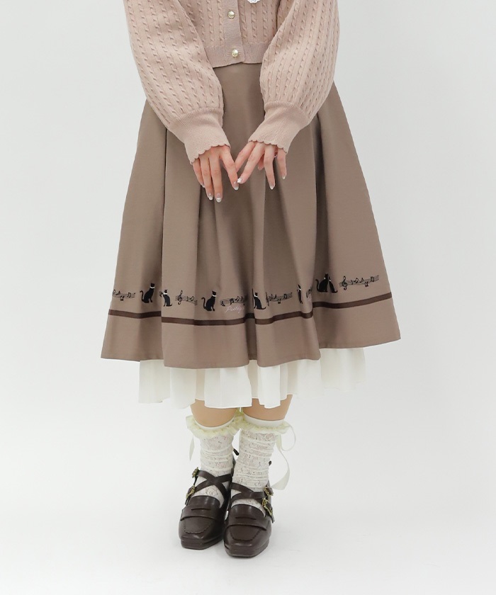 ネコ×楽譜刺繍スカート