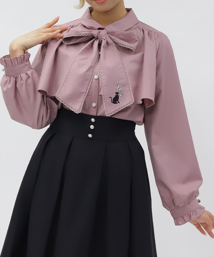 ネコ×音符刺繍ブラウス