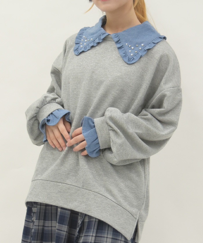 デニム襟ラメ裏毛トレーナー