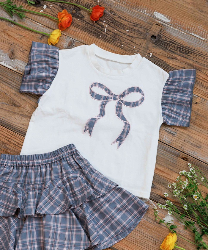 チェックリボンフリルTシャツ