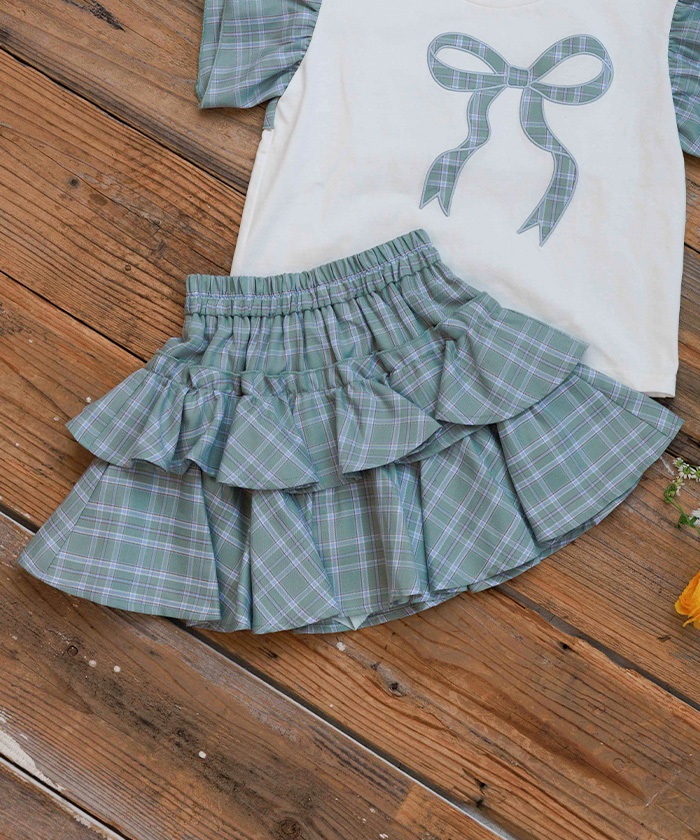 チェックリボンフリルTシャツ