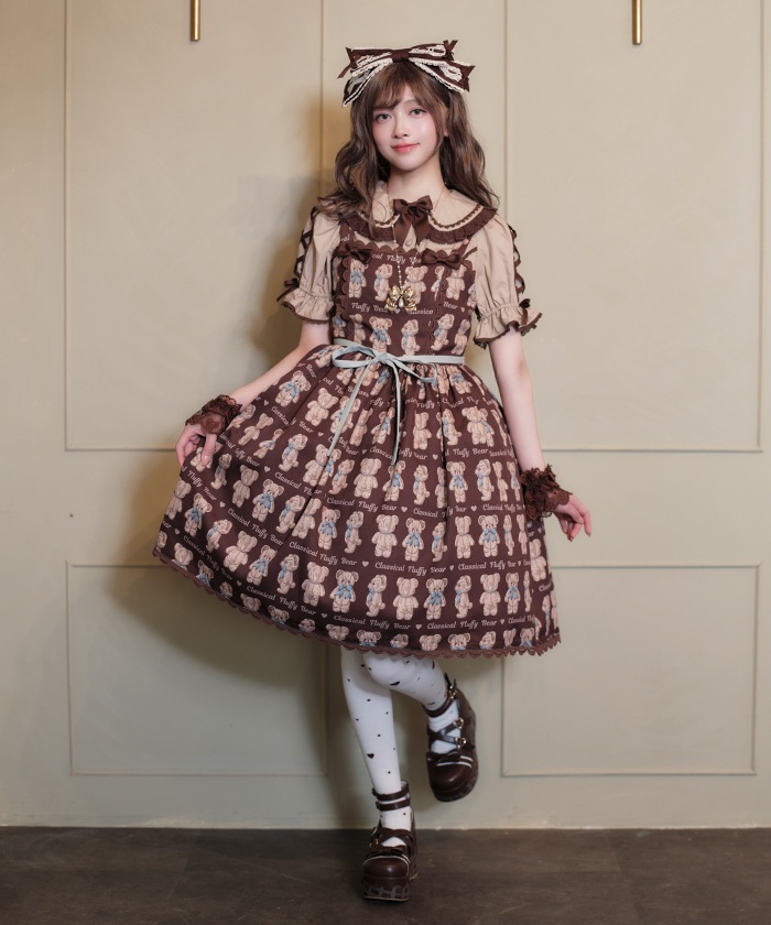 フラッフィベア柄ジャンパースカート【受注生産】