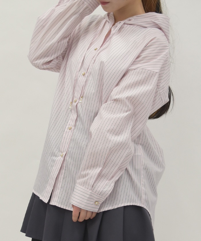 ストライプフードシャツ