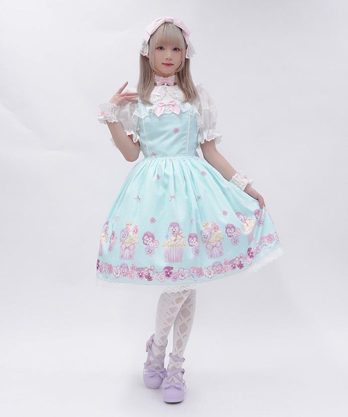 パンジーカップケーキ柄ジャンパースカート