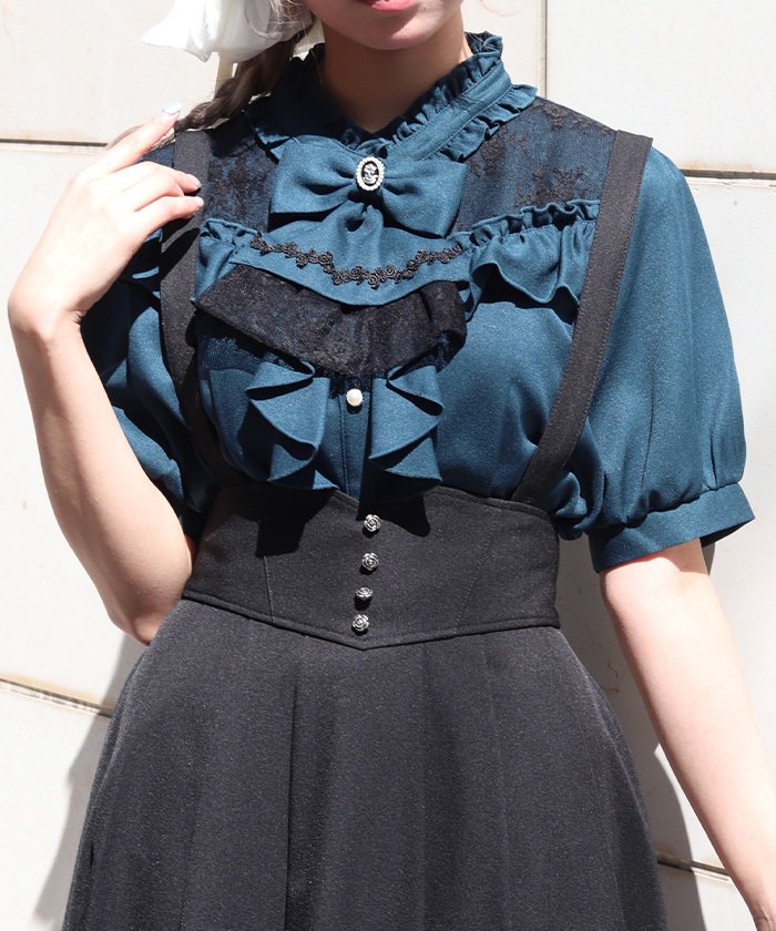 リボン×ジャボブローチブラウス