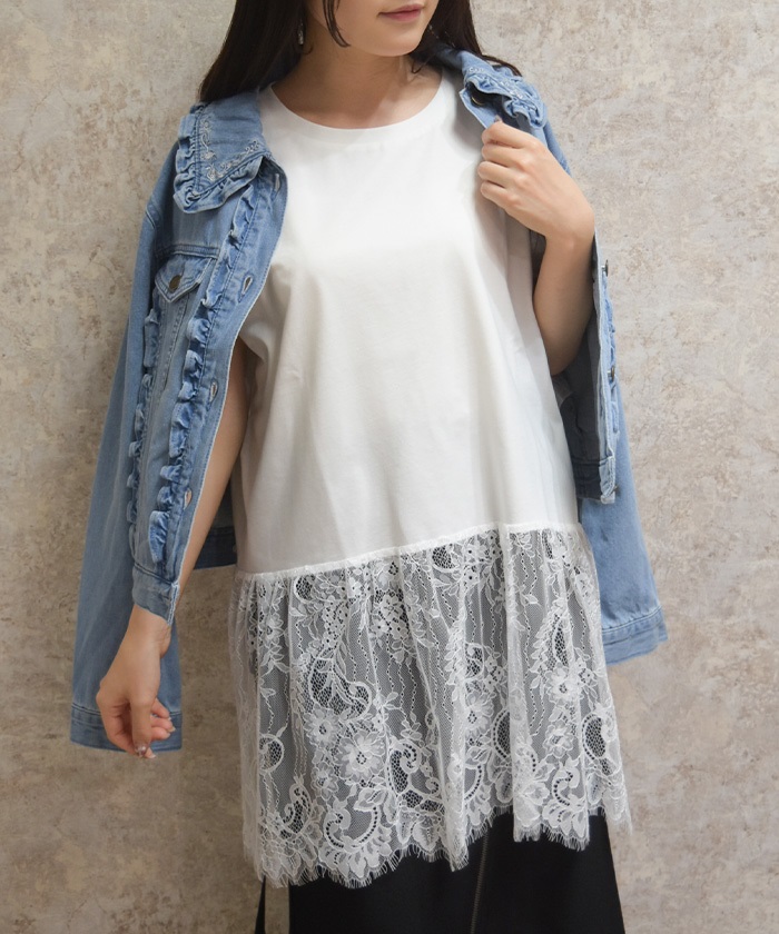 裾レースが素敵なプルオーバーを