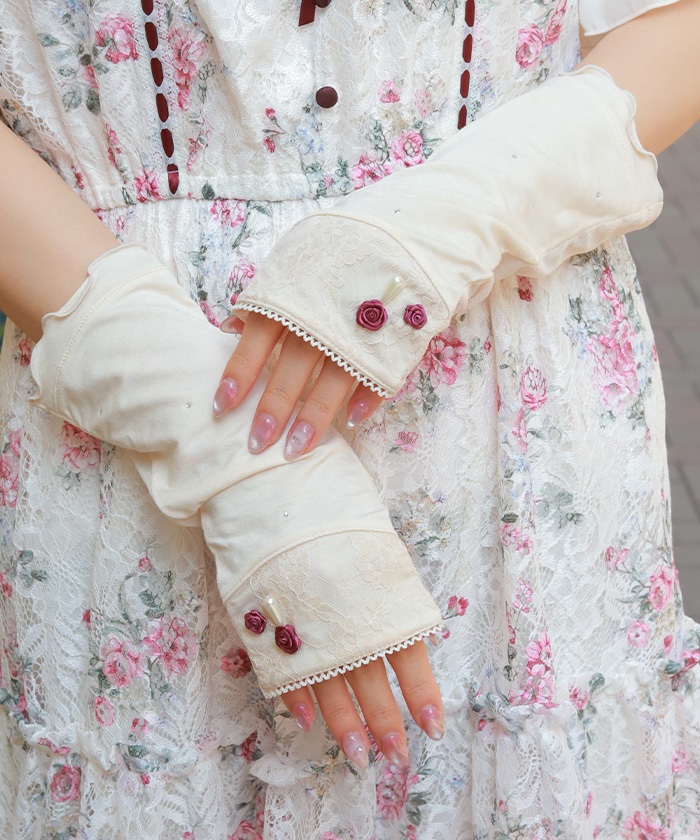 バラ×レースUVショート手袋