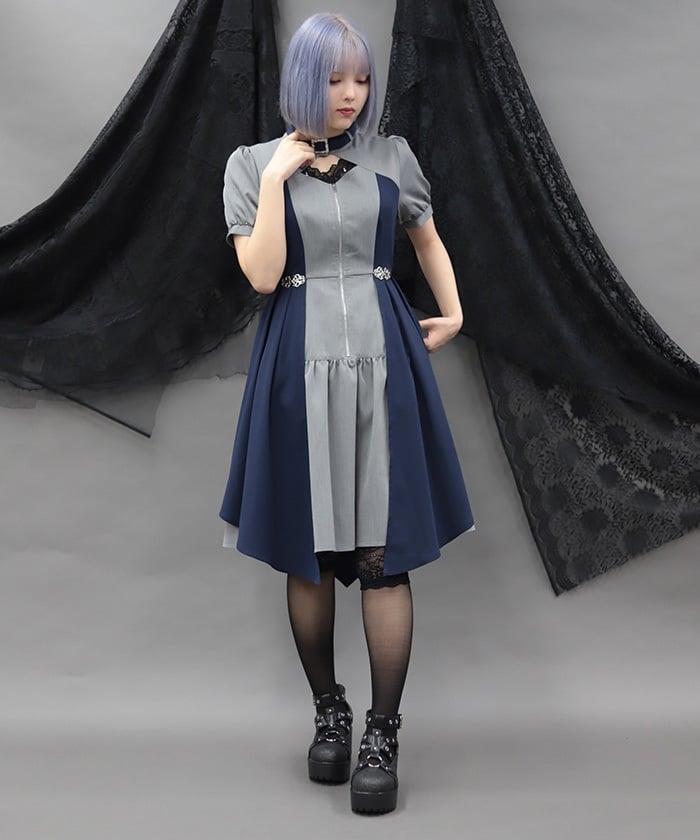 金具デザインバイカラーワンピース