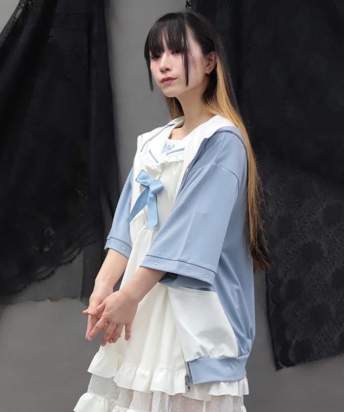バイカラーフリルパーカー