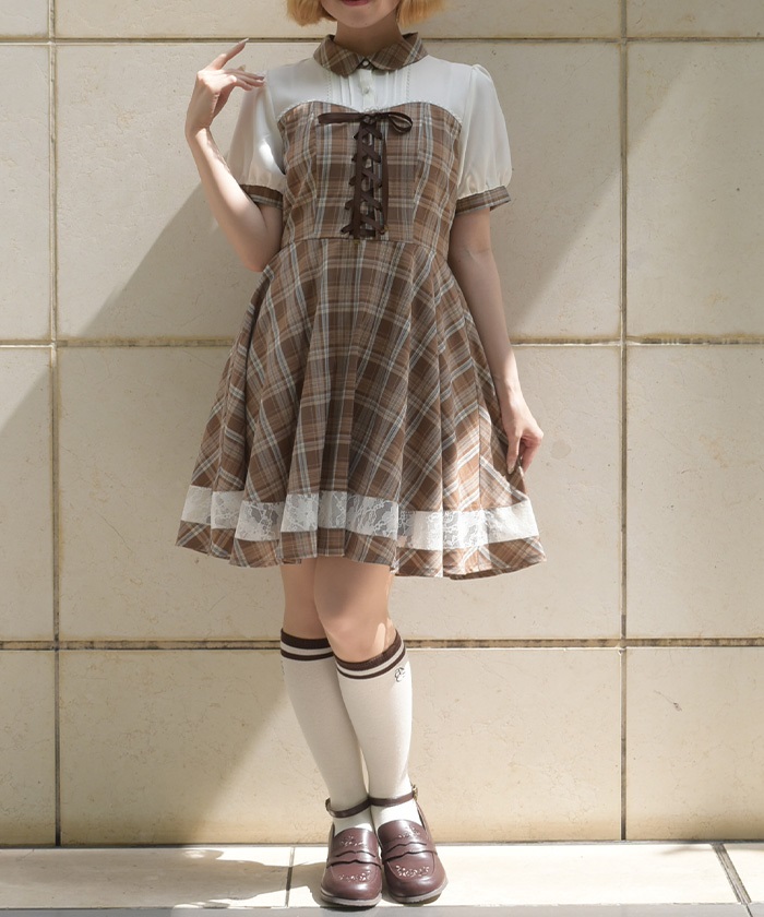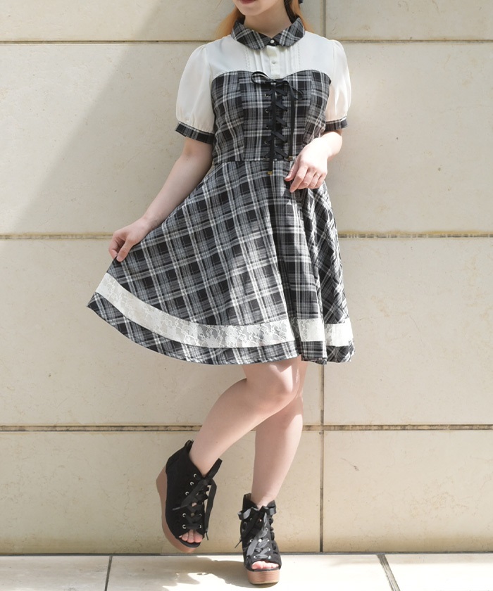 チェック柄のビスチェ風がかわいいミニ丈ワンピースです♡