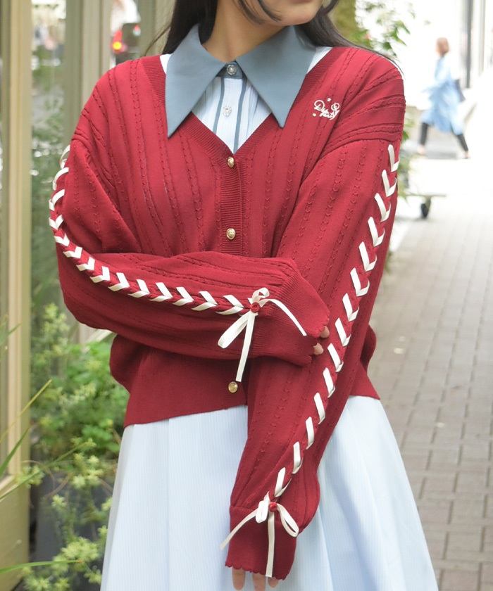 UVカット編み上げニットカーディガン