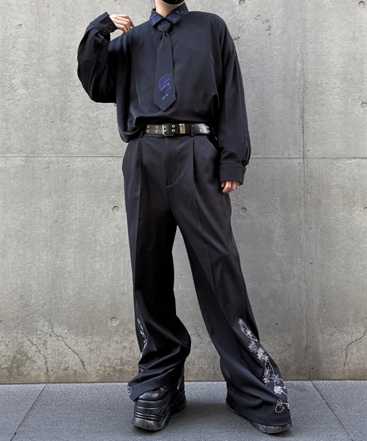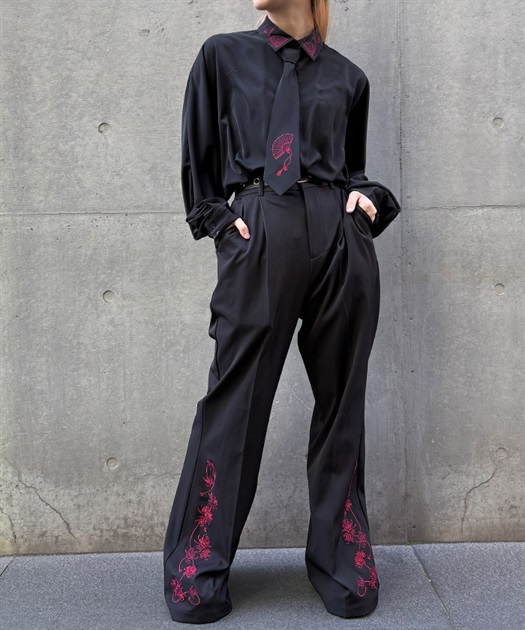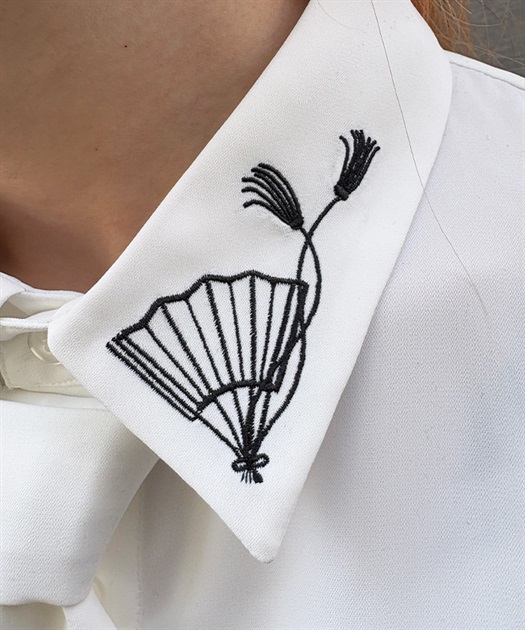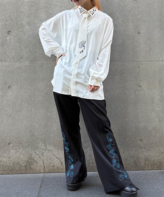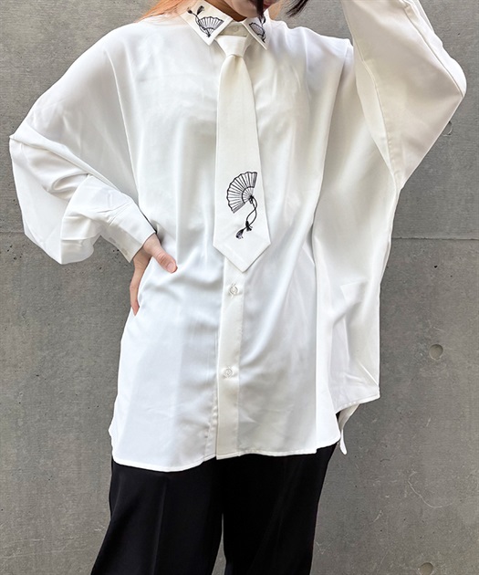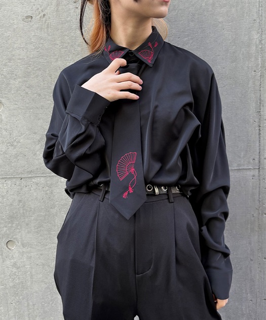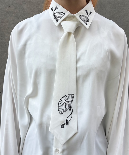 タイ付扇子刺繍シャツ