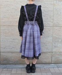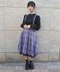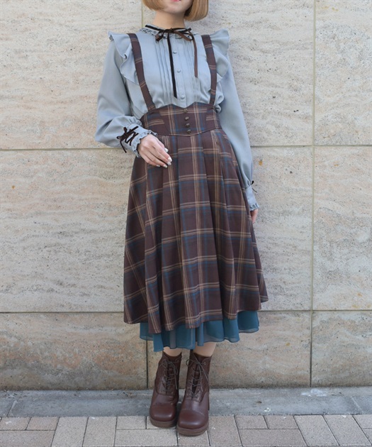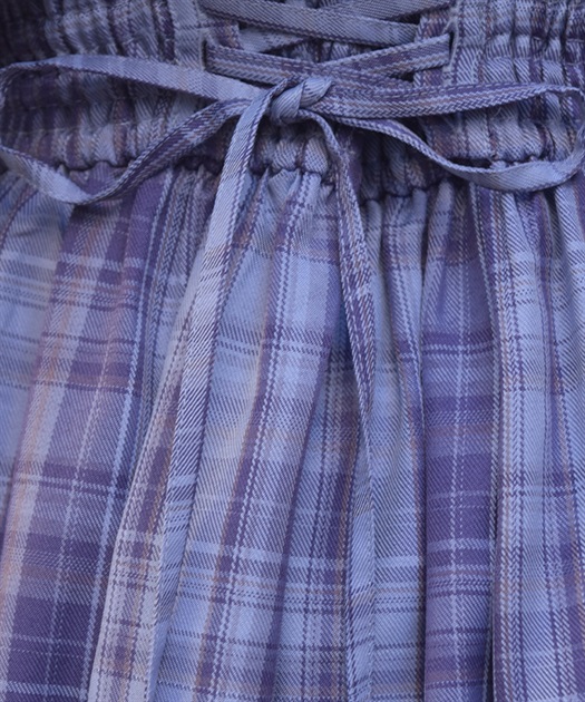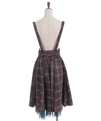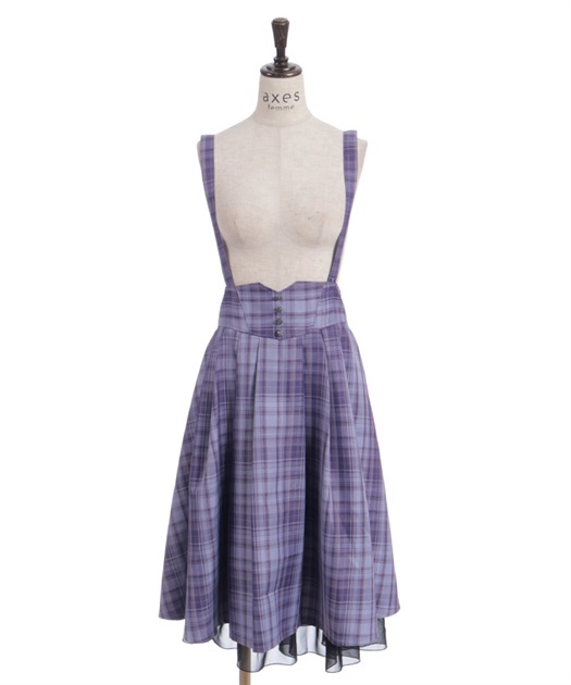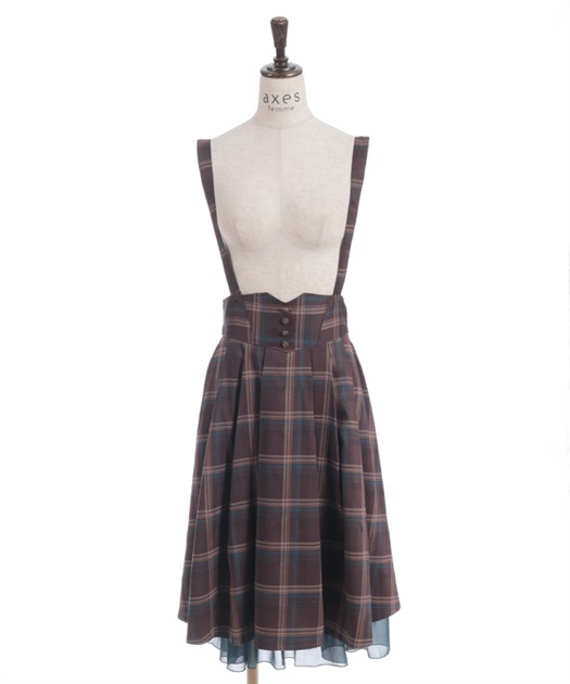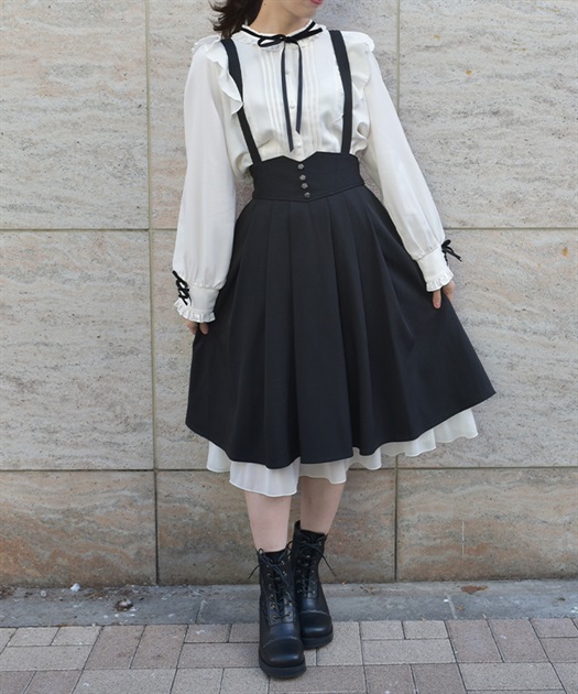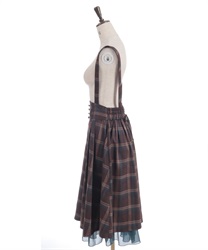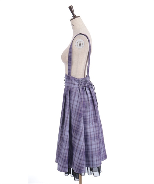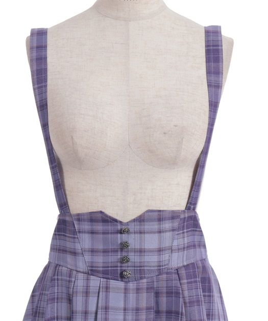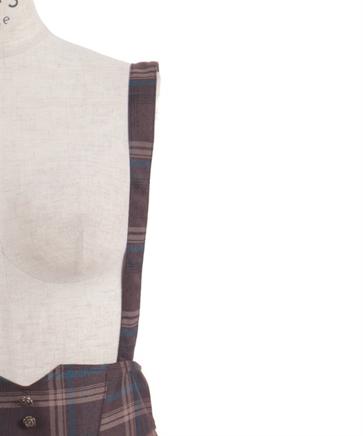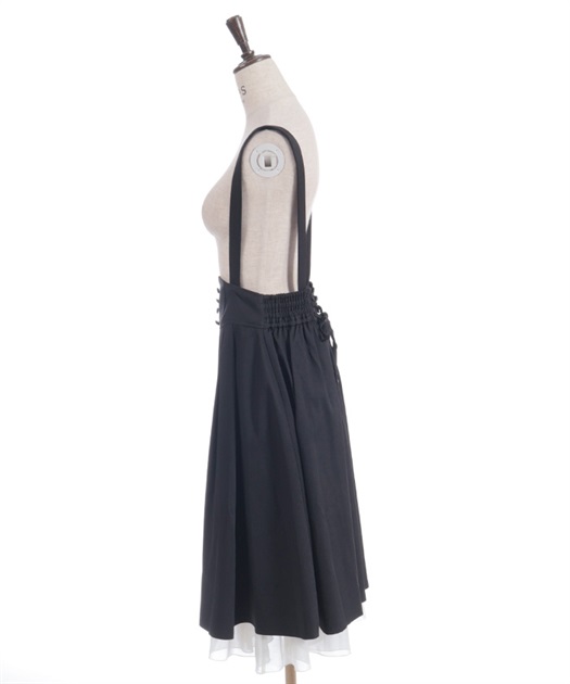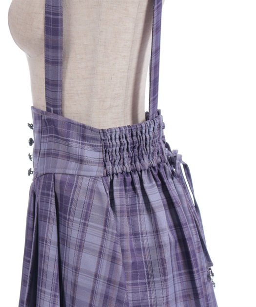 サスペンダー付きでコーデの主役になり、後ろウエストのレースアップで体形に合わせてシルエット調整できるのも魅力です。