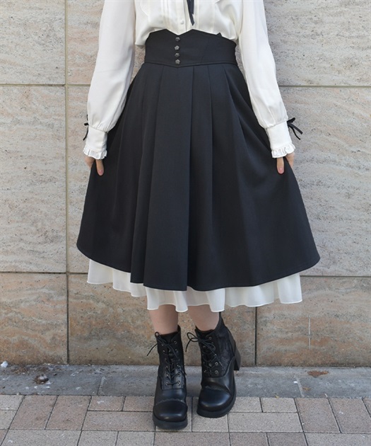 裾フリルとハイウエストがポイントになり、きちんと感の中に可愛らしさも楽しめるスカート。