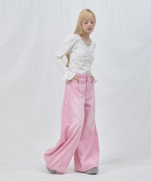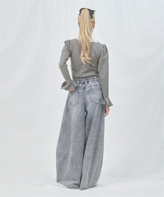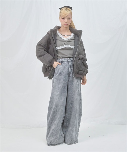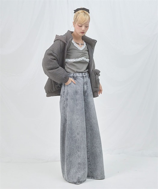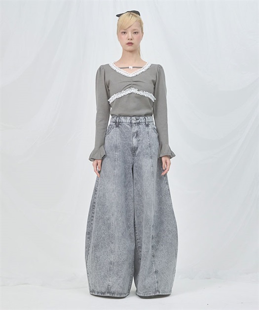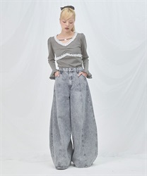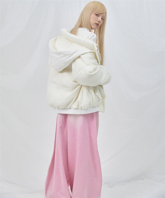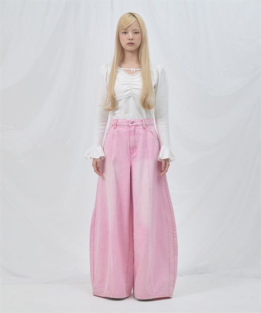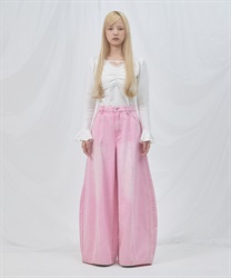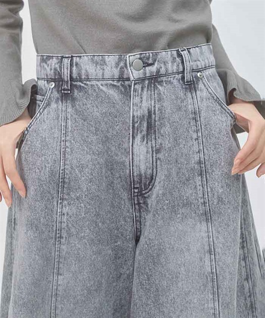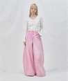 裾にかけて丸みを持たせて大胆なシルエットにし履くだけでコーディネートにインパクトを与えてくれます。