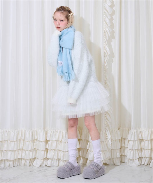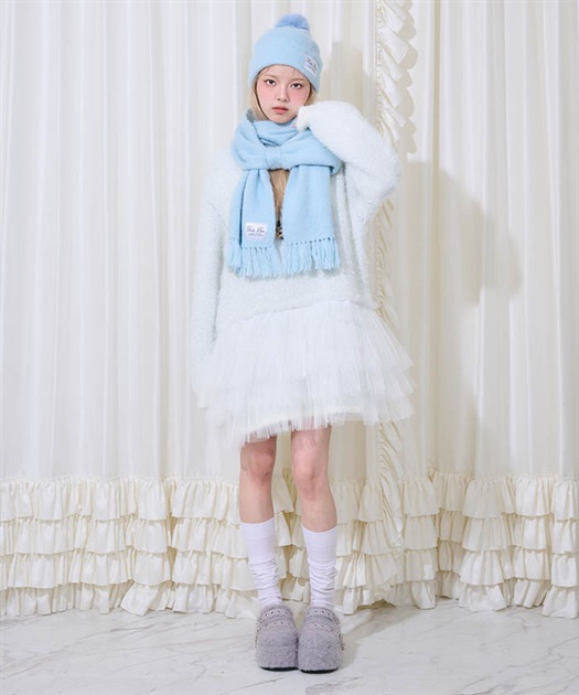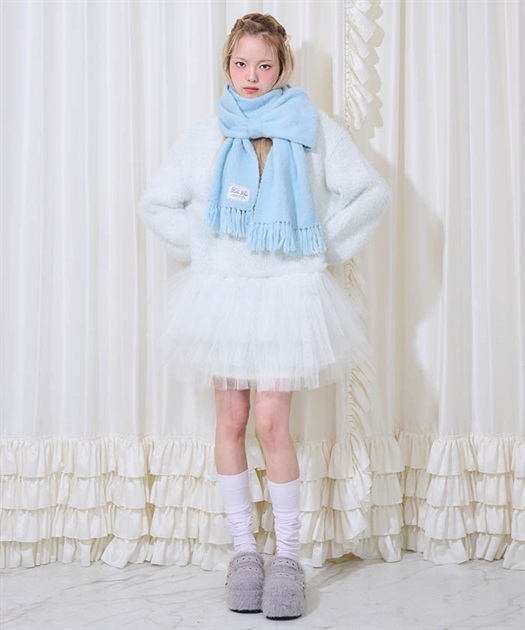 ふんわり柔らかい生地が可愛いニットマフラー。