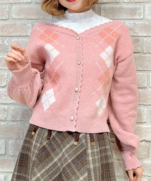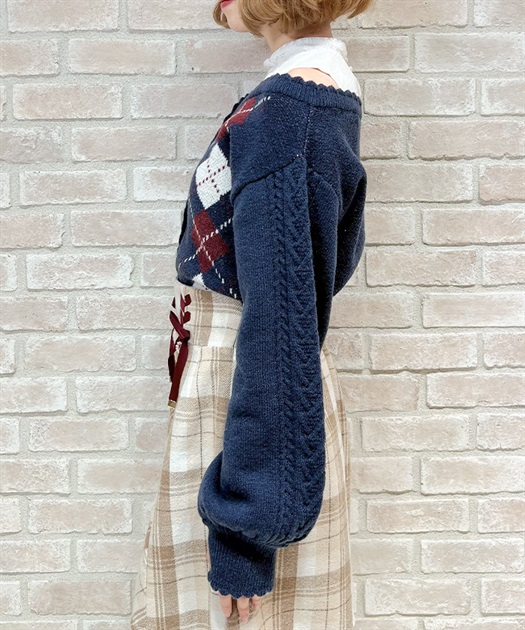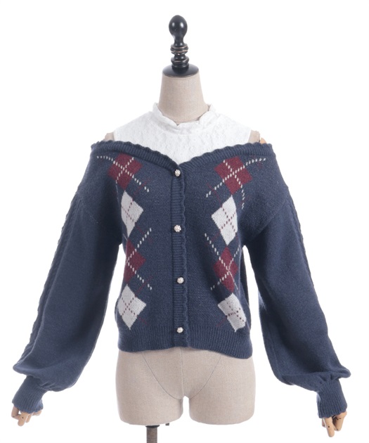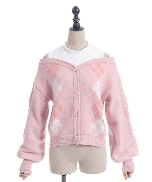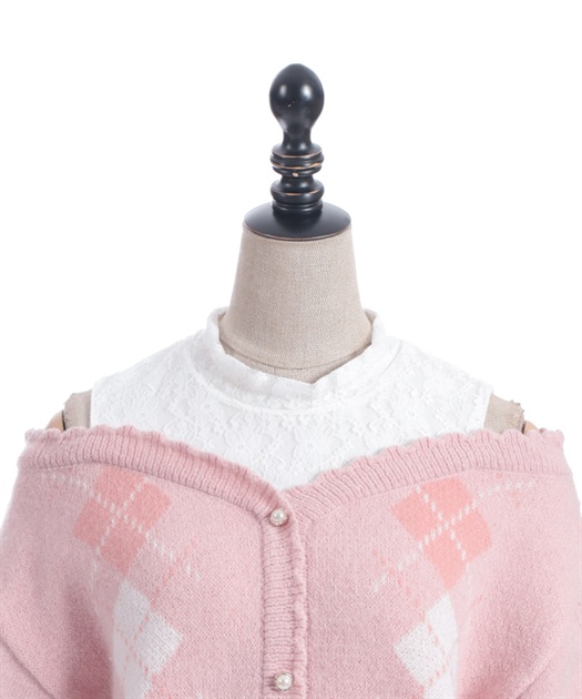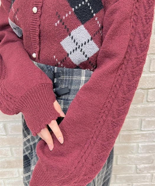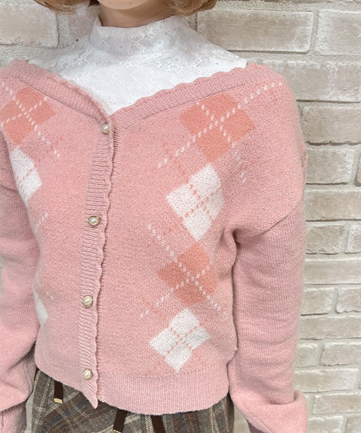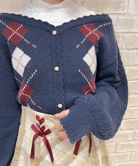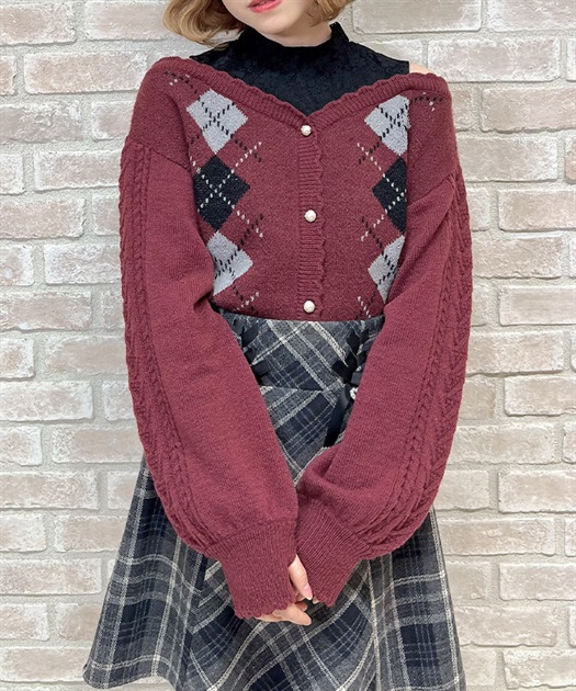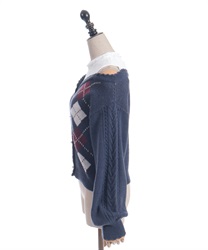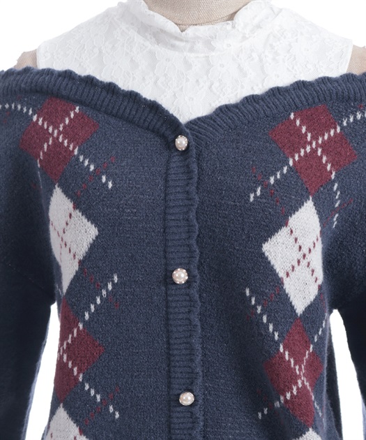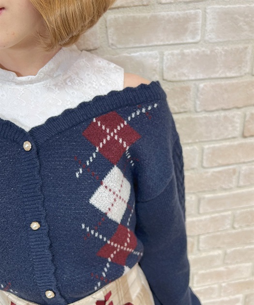 オリジナルの配色をあしらった、アーガイル柄のレイヤード風ニットです。