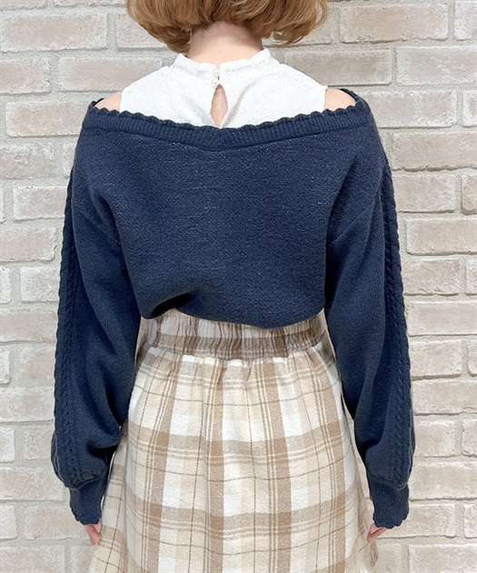 お好みでフィンガーホールを通して暖かく&可愛らしく着られるニットです。