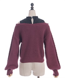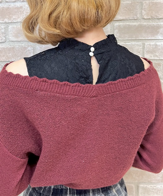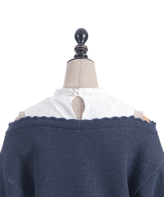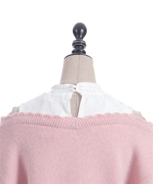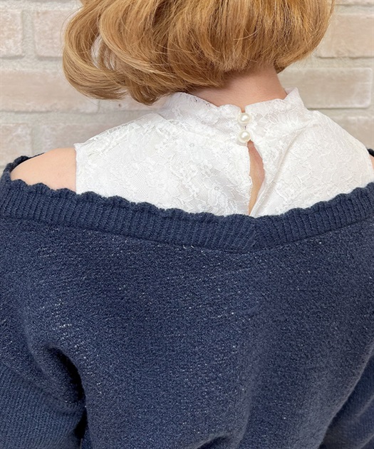レースタンクを中に着ているようなレイヤード風のデザインで、さり気ない肌見せがガーリーなシルエット。