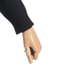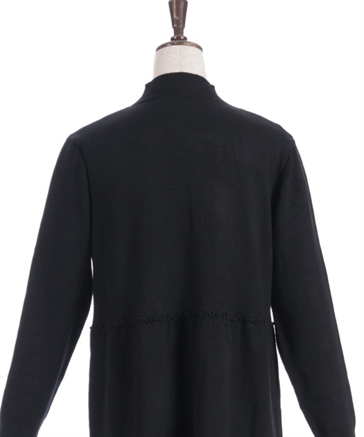 片側に施したデザインボタンがポイント。アシンメトリーな配置で表情をつくり、ワンカラーでも単調にならずこなれ感を演出します。ウエスト切替でシルエットにメリハリを出しつつ、柔らかなニット素材で着心地も快適。