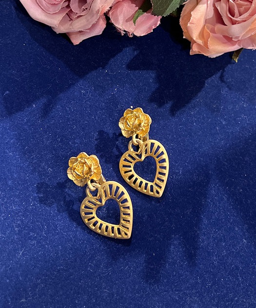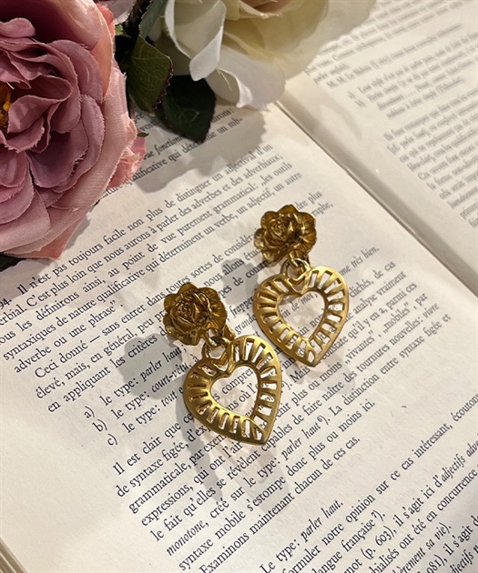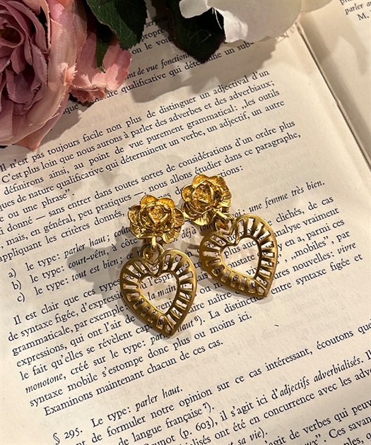 優しいゴールドカラーが美しいローズ×ハートモチーフのイヤリングです。