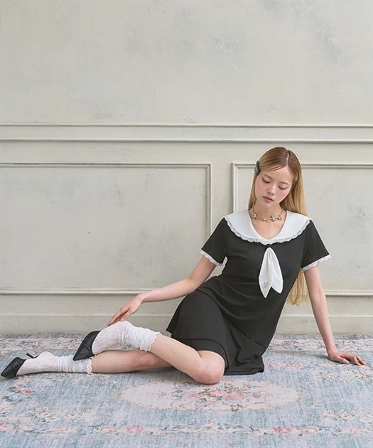 クラシカルな雰囲気に、甘さも混ざったセーラーワンピース。