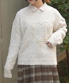 胸元にあしらったパール刺繍がポイント。さりげないきらめきが顔まわりを明るく見せ、ニットの柔らかな素材感と絶妙にマッチします。ゆるっとしたシルエットで体のラインを拾わず、ラクに着られるのも嬉しいポイント。