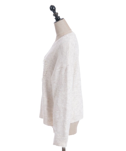 ふんわり柔らかな風合いが魅力のパールデザインニット。優しい表情のニットにきらりと輝くパールモチーフが映え、甘すぎず上品に着こなせる一枚です。デイリーにも特別な日にも寄り添ってくれます。