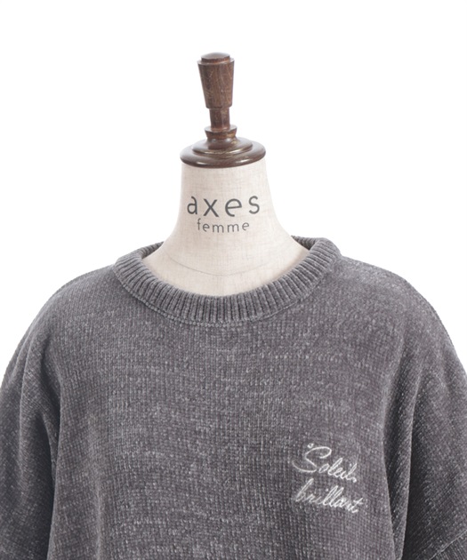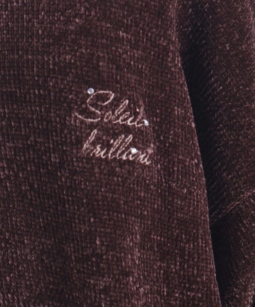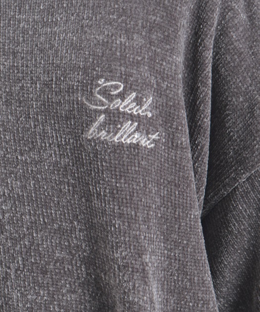 胸元には繊細な刺繍とクリアパーツを添え、シンプルな中にほんのり華やかさをプラス。ゆるっとしたシルエットで体のラインを拾いにくく、腰をカバーする丈感がスタイルアップにも◎
