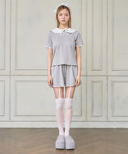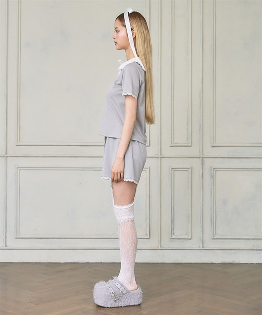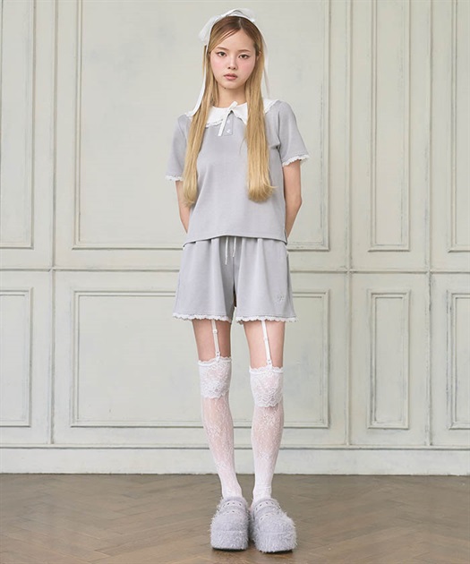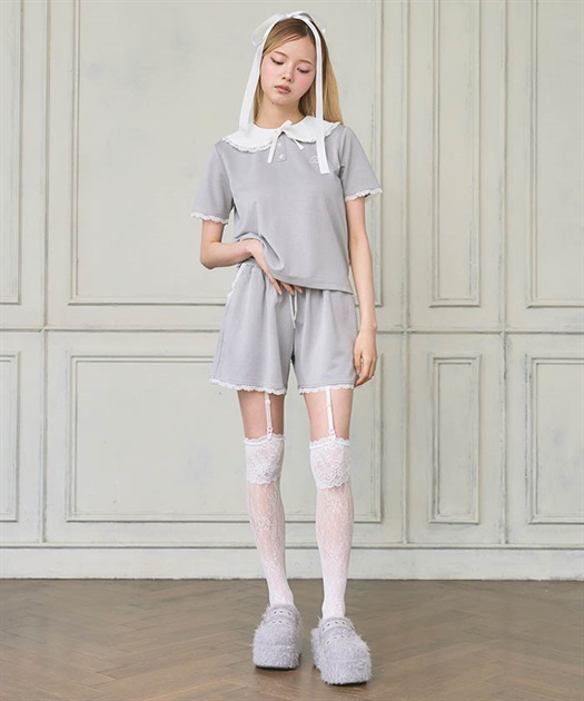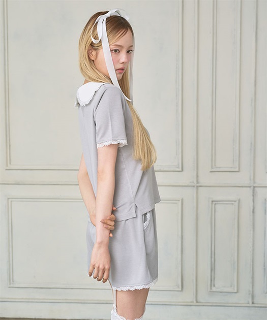 繊細なレースとラフなシルエットが合わさったセットアップ。