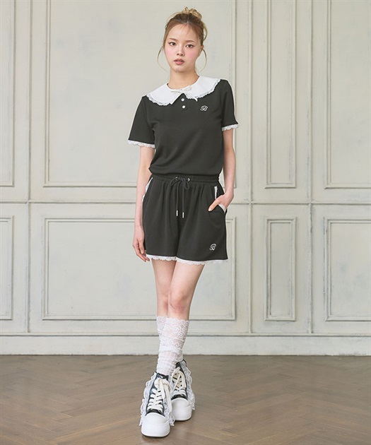 丸みのあるカラーにさりげなくあしらわれたレースでBEBEらしいロマンティックカジュアルに落とし込みました。