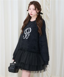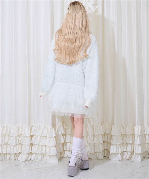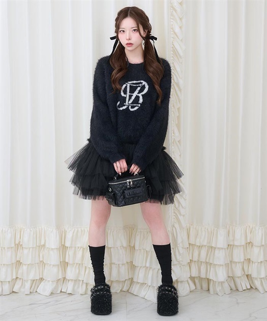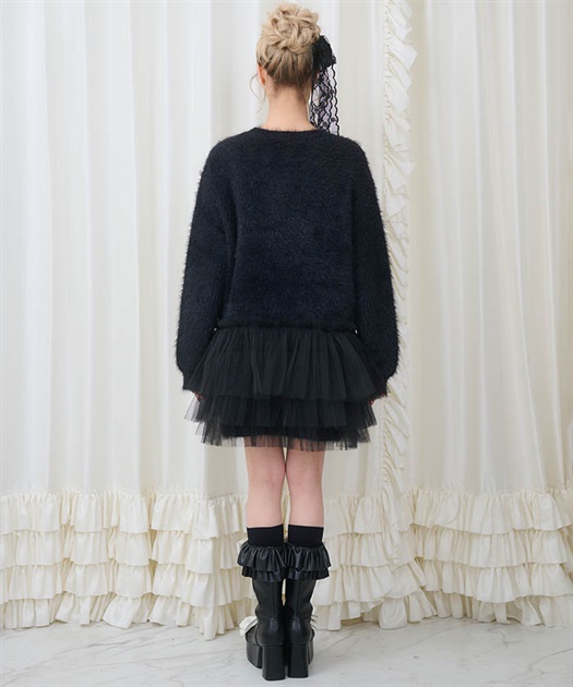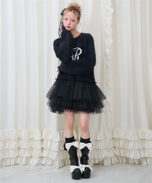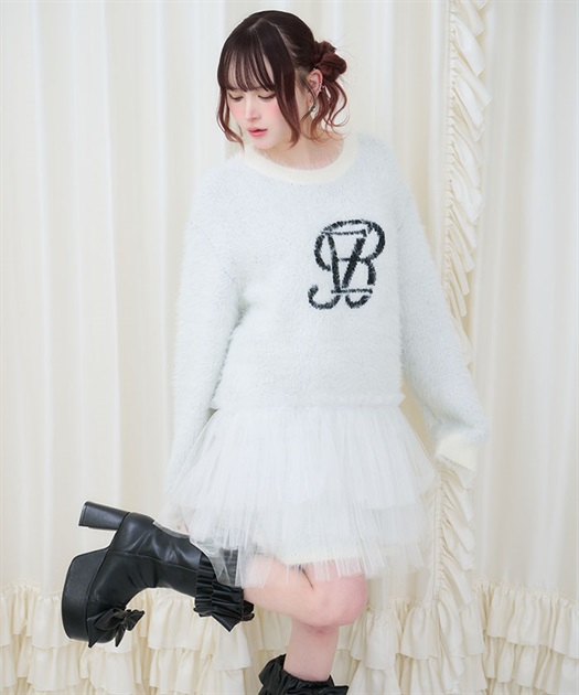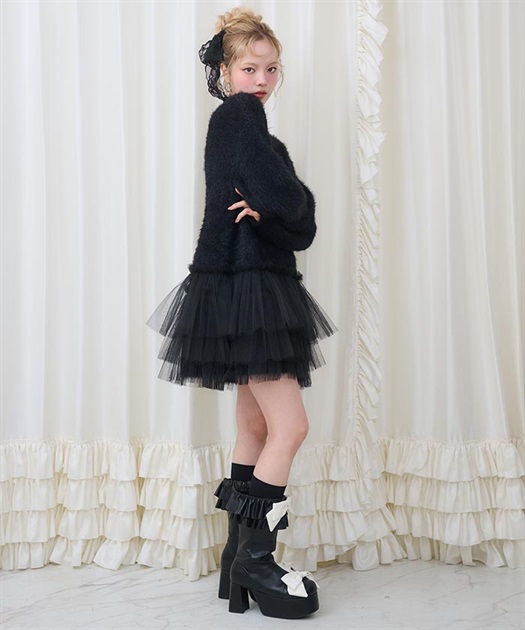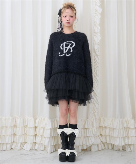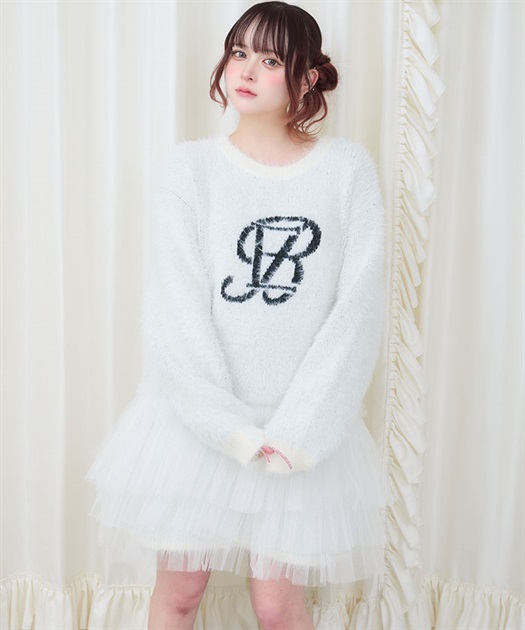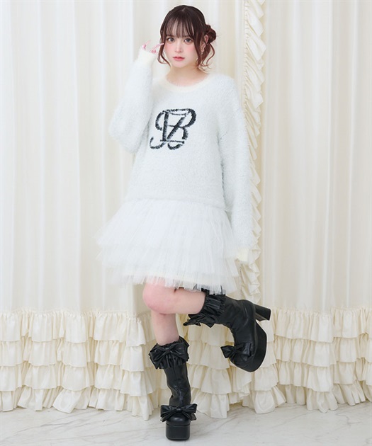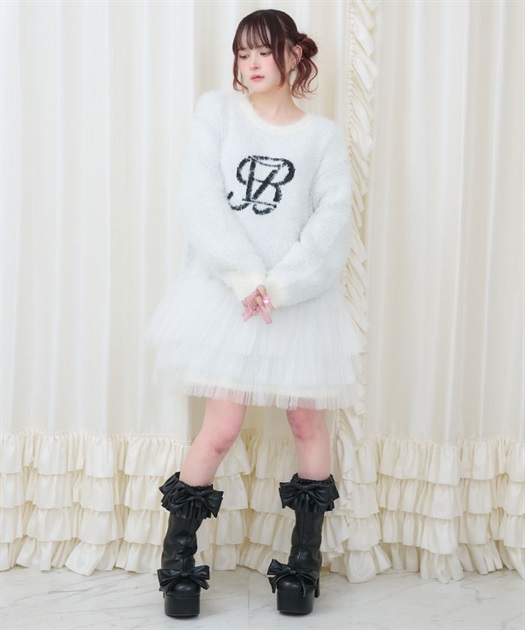 裾には3段フリルチュールでBebeならではの冬のニットアイテムはオーバーサイズなので一枚でコーディネートが完成します。
