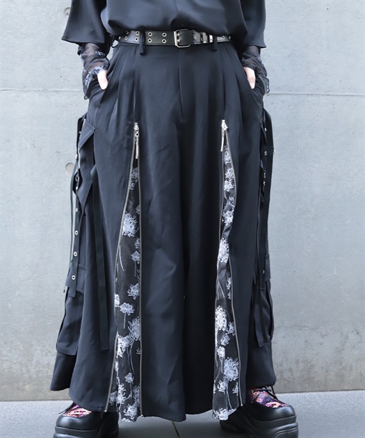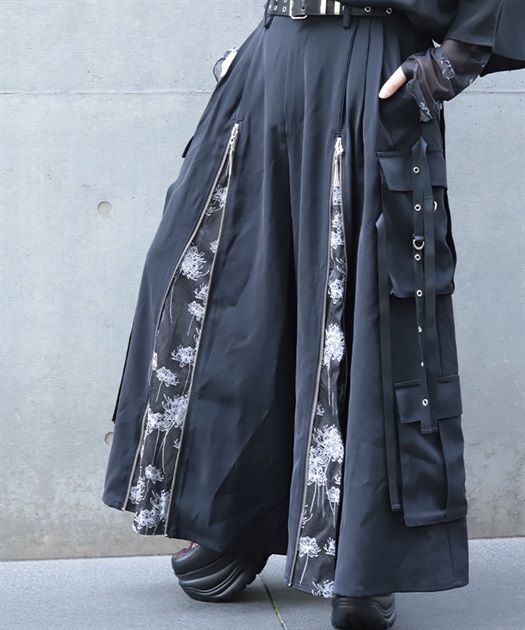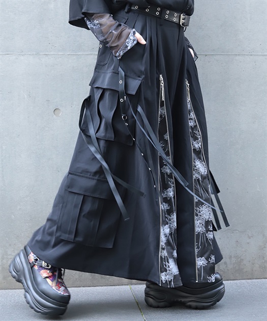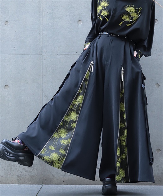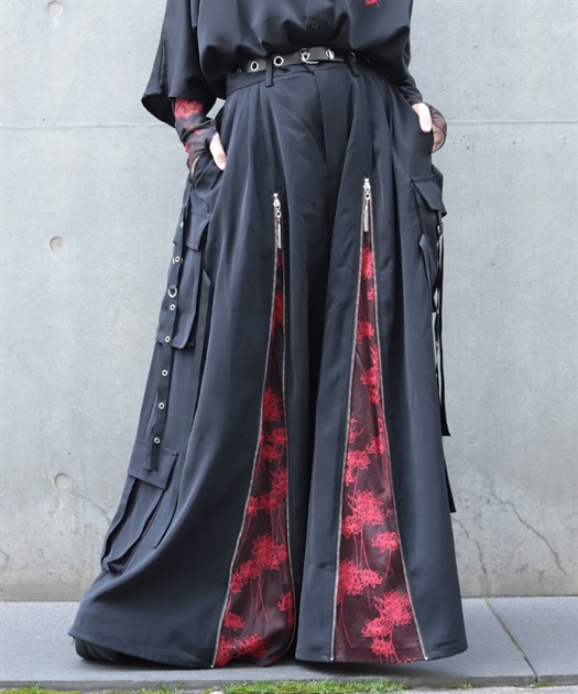 彼岸花ジップカーゴ袴パンツ