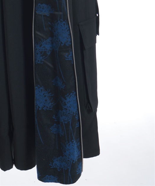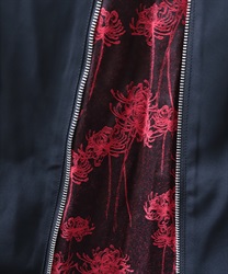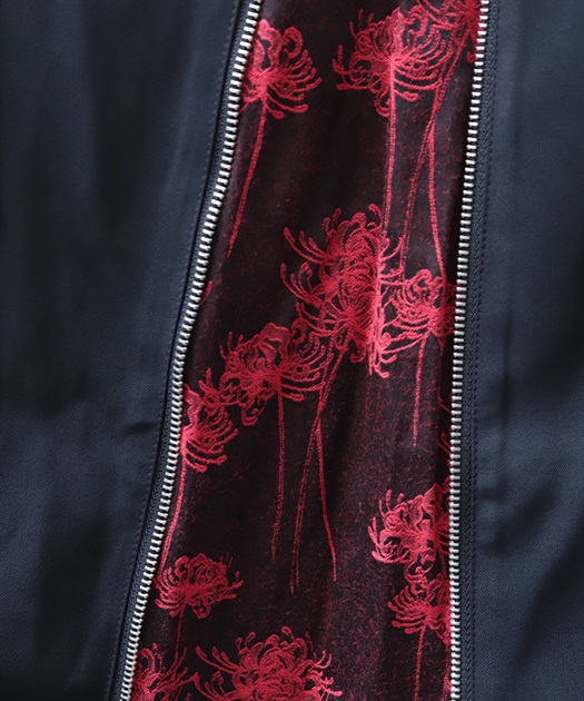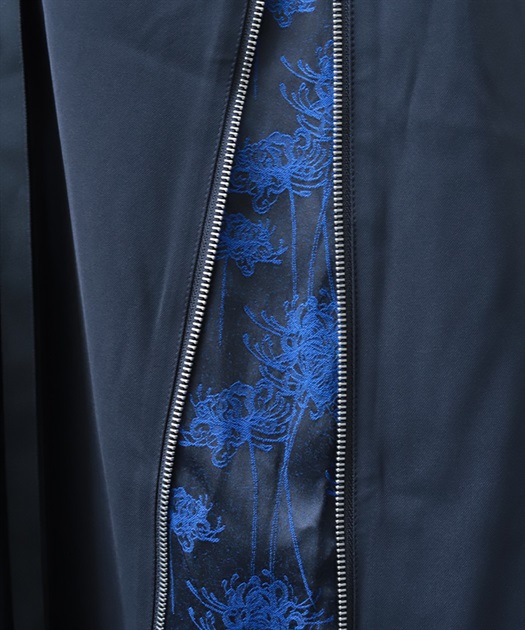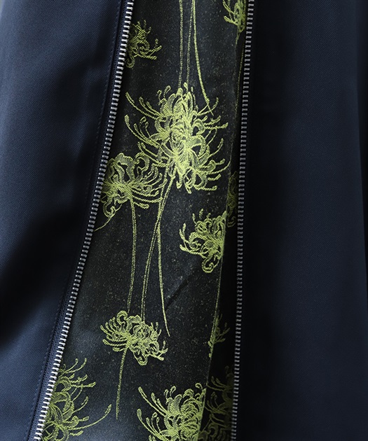フロントの大胆な切替部分には、立体的な彼岸花のジャガード生地を使用。