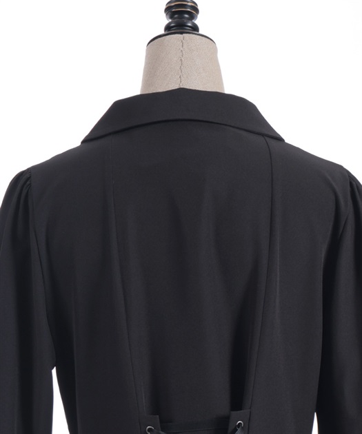 襟にあしらった金具が華やかさをプラスしています。