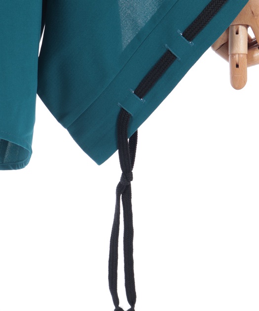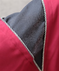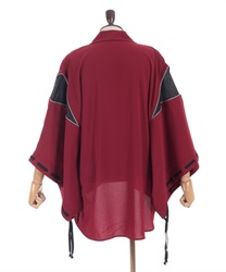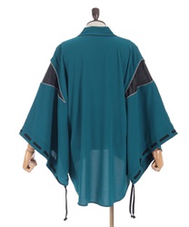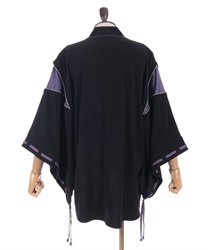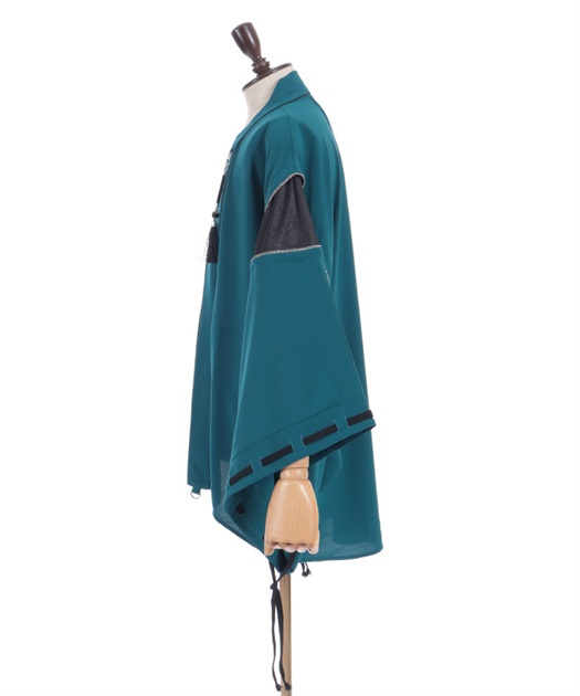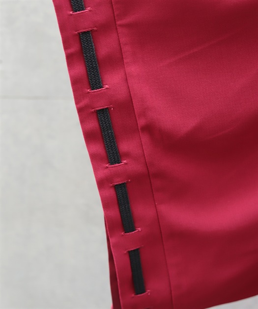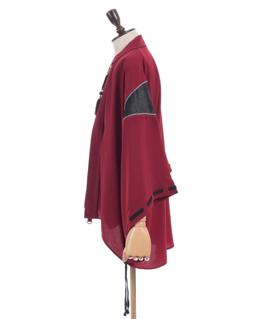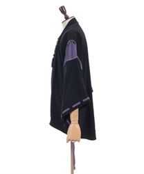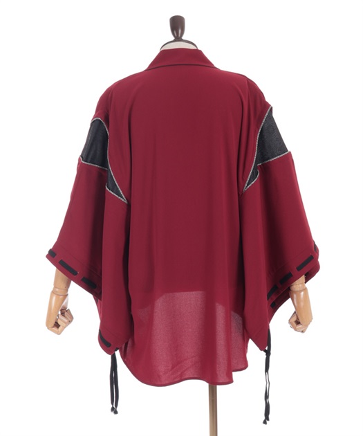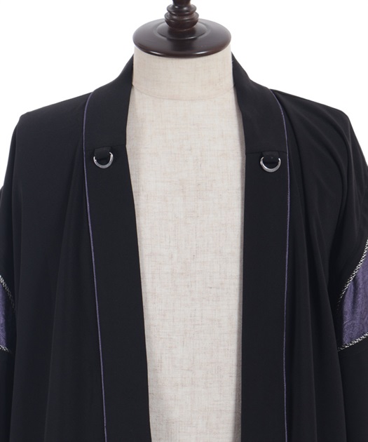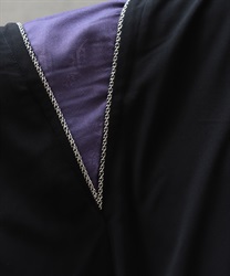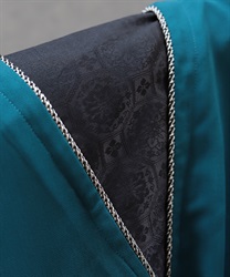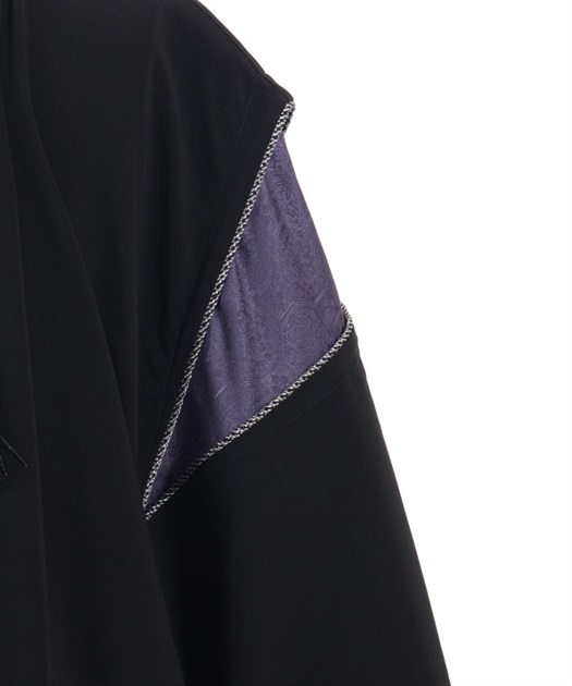 肩の切替には絵天井を思わせる和柄のジャガード生地を、縁のパイピングにはラメ生地を使用し、絢爛な印象を演出します。