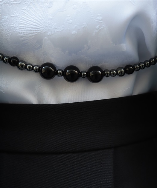 袖括りの紐やタッセル、羽織紐が雅なアクセントに。