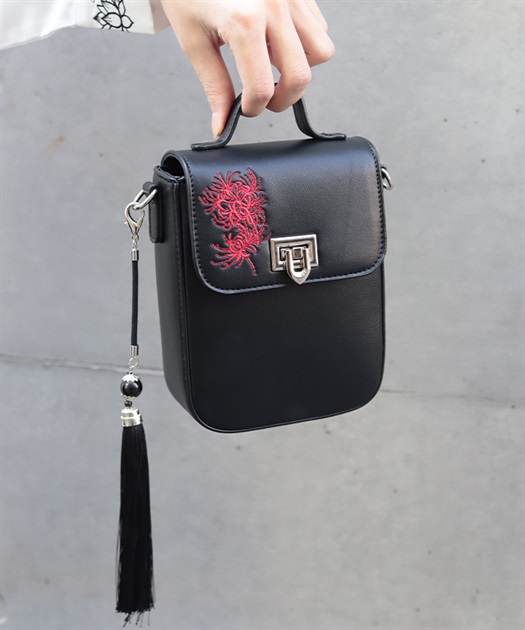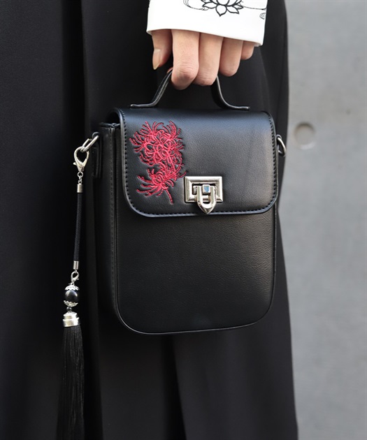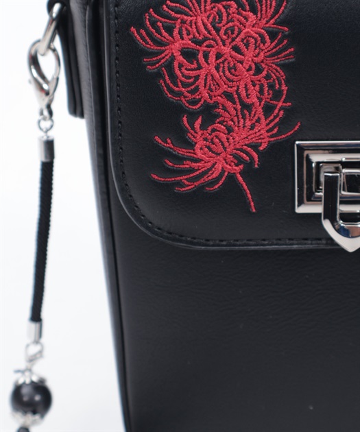 彼岸花の刺繍が目を惹くショルダーバッグ。